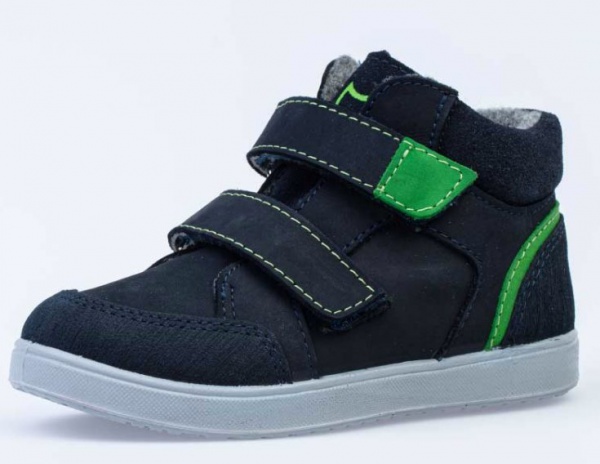 Стильные ботинки с подкладкой из байки с 80% содержанием шерсти. Верх выполнен из комбинации материалов гидрофобного нубука и гладкой кожи, которые придают изделию эффектный внешний вид. Два ремня с липучкой позволяют не только быстро обувать и снимать обувь, но и обеспечивают плотное прилегание обуви к стопе.Носочная часть защищена кожаным носком с покрытием, что придаёт носочной части повышенную износостойкость. Мягкий манжет создает комфорт при ходьбе и предотвращает натирание ножки ребенка. Подошва литьевого метода крепления легкая и гибкая, имеет анатомическую форму следа, повторяя изгибы свода стопы.Материал подошвы: ПУ