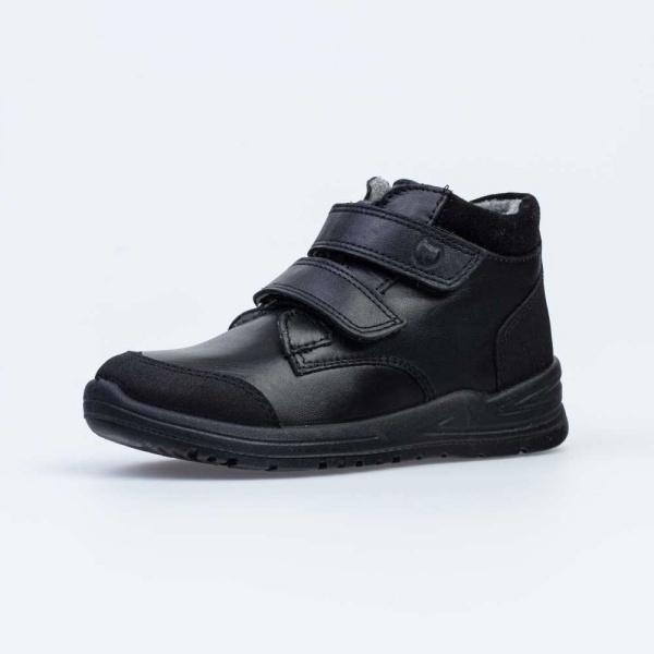 Демисезонные ботинки для мальчика на байковой подкладке черного цвета Верх выполнен из натуральной кожи - износостойкого, гипоаллергенного и дышащего материала. Подкладка и стелька из байки, которые на 80% состоят из натуральной шерсти, хорошо сохраняют тепло. Мягкий манжет снижает вероятность натирания. На носочной части - защитные накладки, которые продлевают срок службы обуви. Липучки-велькро позволяют отрегулировать обувь по подъему, а также быстро обуваться и разуваться. Подошва из ПУ (полиуретана) - гибкая и амортизирующая. Модель анатомически правильная: имеет небольшую приподнятость пяточной части по отношению к носочной, в меру жёсткий задник и круглый носок. А стелька из натуральной шерсти приформовывается к своду стопы, создавая индивидуальную анатомическую форму внутреннего пространства в обуви, подходящую только вашему ребенку. Это положительно влияет на правильное развитие стоп и всего опорно-двигательного аппарата. Сделано в России.