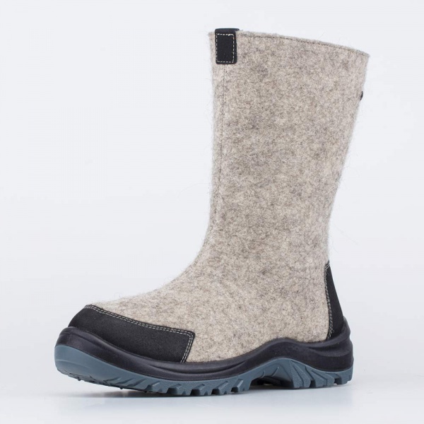 Мужские валенки обладают множеством преимуществ. Верх и стелька - из натурального войлока, на 100% состоящего из овечьей шерсти. Он дарит ногам целебное сухое тепло и оказывает массажный эффект. Подкладка из шерстяного меха, более чем на 80% состоящего из овечьей шерсти, обеспечивают тепло даже в лютый мороз. Большой плюс в том, что носок и пятка защищены кожаными накладками с полиуретановым покрытием - им не страшны ни влага, ни реагенты. Молния позволяет быстро обуваться и разуваться. Лаконичный дизайн и спокойный серый цвет дают возможность сочетать обувь с любой одеждой. Подошва из ПУ (полиуретана) дополнена резиновой накладкой для придания устойчивости на зимних поверхностях. Модель анатомически правильная: пяточная часть приподнята над носочной, а стелька из натурального войлока/шерсти приформовывается к своду стопы, создавая индивидуальную форму внутреннего пространства в обуви. Сделано в России.