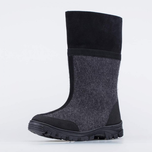Мужские валенки черного цвета имеют среднюю длину голенища. Верх и стелька - из натурального войлока, на 100% состоящего из овечьей шерсти. Он дарит ногам целебное сухое тепло и оказывает массажный эффект. Подкладка из шерстяного меха, более чем на 80% состоящего из овечьей шерсти, обеспечивают тепло даже в лютый мороз. Молния позволяет быстро обуваться и разуваться. Морозостойкая подошва из ТЭП (термоэластопласта) обеспечивает устойчивость на зимних покрытиях, а ее толщина - дополнительную теплоизоляцию. Модель анатомически правильная: пяточная часть приподнята по отношению к носочной, а стелька из натурального войлока/шерсти приформовывается к своду стопы, создавая индивидуальную форму внутреннего пространства в обуви. Сделано в России.