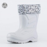 Детские утепленные сапоги из ЭВА подходят для дождливой погоды и учитывают особенности детской стопы. Вкладной чулок с пришитой войлочной стелькой имеет нескольких слоев: - первый изготовлен из мягкого флиса, который на 80% состоит из хлопка и хорошо отводит от стопы влагу. - второй слой – утеплитель из гипоаллергенного синтетического материала, обеспечивающий теплоизоляцию. Чулок укреплен внешним карманом из искусственной кожи, чтобы обеспечить дополнительную поддержку для стопы и защитить задник от преждевременного истирания. Его можно вынуть и просушить на батарее, а также при необходимости постирать в режиме ручной стирки. Отворот из плотного нейлона имеет светоотражающий рисунок, который обеспечивает безопасность ребенка в темноте. Обувь предназначена для детей дошкольного возраста, поэтому особое внимание уделено правильной конструкции: более плотный материал в районе пятки для придания необходимой жесткости и анатомическая форма следа. Сделано в России.