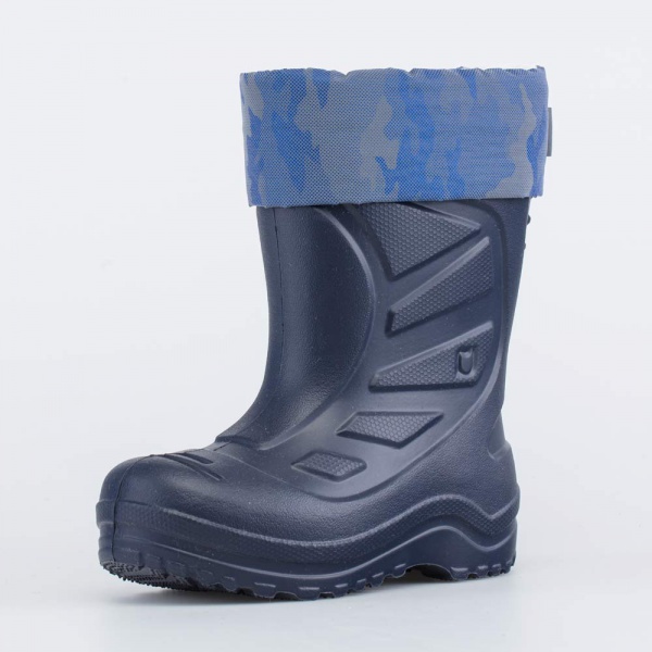 Невесомые водонепроницаемые сапожки из материала ЭВА. Материал ЭВА (этиленвинилацетат) - лёгкий, гибкий и амортизирующий - ножкам ребенка будет комфортно. Вкладной чулок из байки с содержанием шерсти более 80% можно легко вынуть, просушить и при необходимости постирать в режиме ручной стирки. Чулок укреплен внешним карманом из искусственной кожи, чтобы обеспечить дополнительно поддержку для стопы и защитить задник от преждевременного истирания. Манжет сапожек светоотражающий, что важно для безопасности ребенка рядом с проезжей частью. Сапожки предназначены для деток младшего возраста, поэтому особое внимание уделено анатомическим свойствам подошвы.