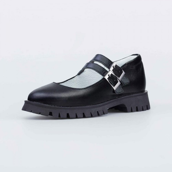 Кожаные туфли для девочки классического черного цвета Верх, подкладка и стелька выполнены из натуральной кожи - износостойкого, гипоаллергенного и дышащего материала. Мягкий манжет снижает вероятность натирания. На ножке туфельки фиксируются двумя элегантными ремешками с пряжками. Подошва выполнена из ТЭП (термополиуретана) - амортизирующая, гибкая и легкая. Благодаря лаконичному дизайну, туфли отлично подходят для повседневной носки в школу. Модель анатомически правильная: имеет небольшой каблучок/танкетку, подсводник (супинатор), в меру жёсткий задник и круглый носок. Такая научно-обоснованная конструкция положительно влияет на правильное развитие стоп и всего опорно-двигательного аппарата. Сделано в России.